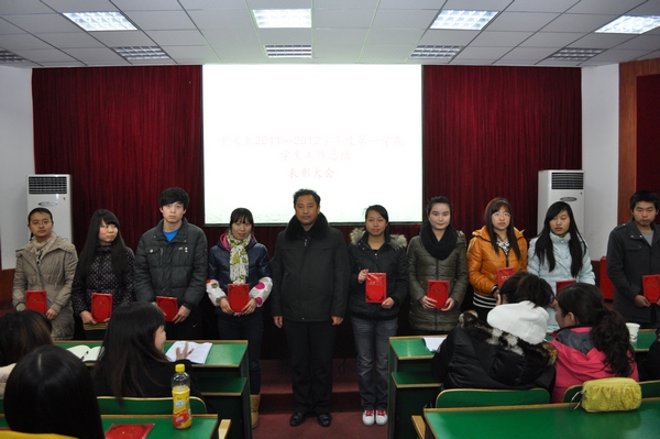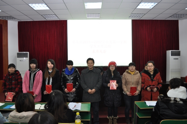 学年第一学期员工工作表彰大会,系党政领导及全体辅导员出席了本次会议。会议由副主任杨军主持。