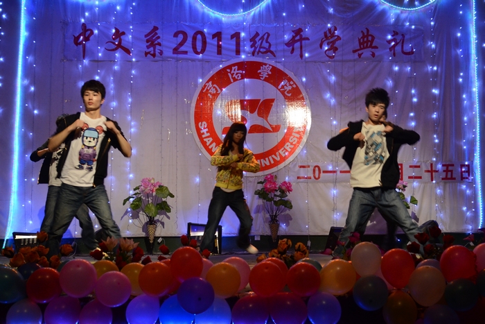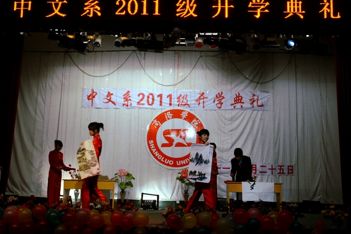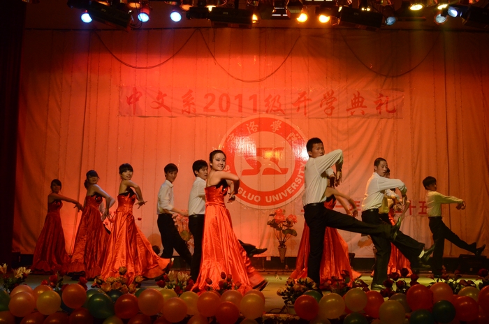大会结束后,迎新晚会在开场舞《同喜同喜》的喜庆氛围中拉开了序幕。乐队的完美组合又以其优美的歌声和出色的乐器演奏,为晚会画上了绚丽的一笔,将整场晚会气氛推向高潮。而贯穿在整场演出中的相声《咱老员工活》风趣幽默,笑点颇多;诗朗诵《四月的纪念》深情真挚,感情饱满;西班牙舞《梦幻西班牙》和新疆舞《美丽公主》将异域风情尽善尽美的呈献给师生,使人赏心悦目,回味无穷;而苍劲有力的书法和精湛的绘画表演更是将观众带入博大精深的中华传统艺术享受中。最后晚会在女声独唱《好运来》的圆润歌声中落下帷幕。