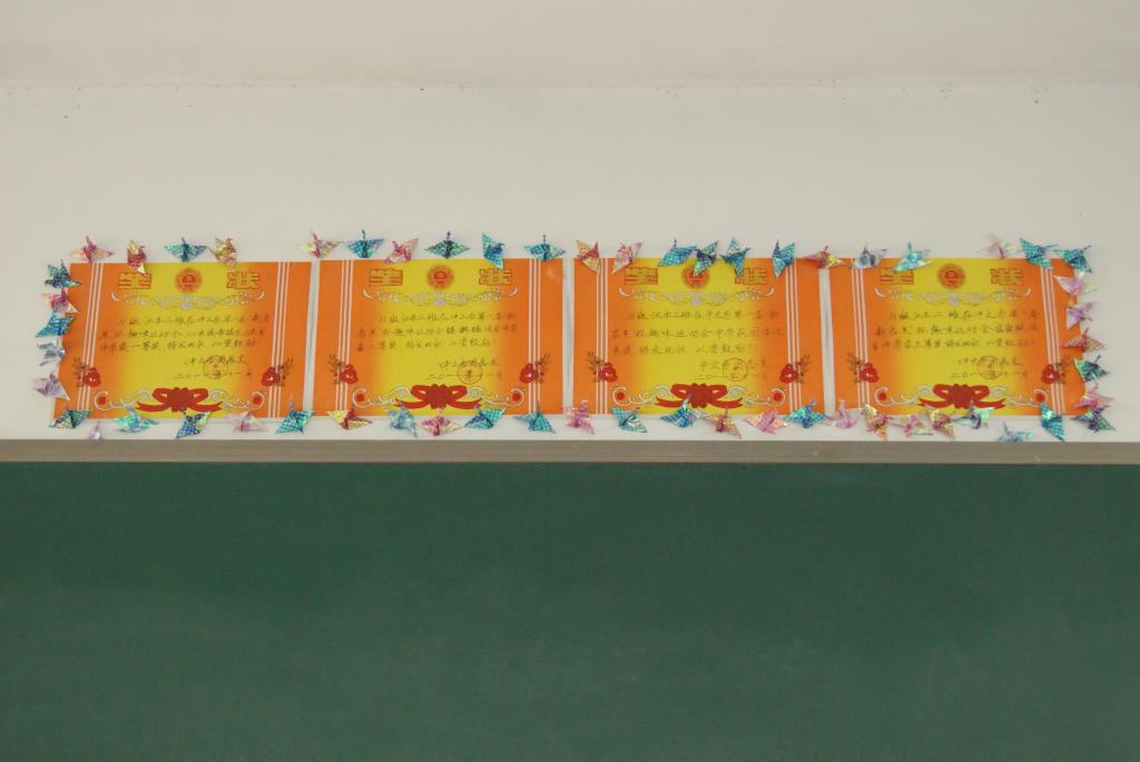 各班通过条幅,字画等展示了各自的特色。条幅上内容丰富:“团结互助,共创辉煌”、“时间飞逝,知识无尽”、“说普通话,写规范字” 、“和谐、儒雅、自强、卓越”等书法字画跃入眼帘。