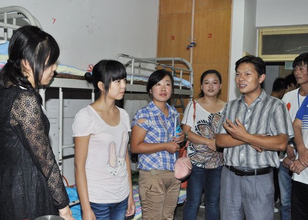9月7日晚,我系主任黄元英,党总支副书记刘勇,副主任杨军、马英群带领2012级各班辅导员、班主任深入员工宿舍看望慰问新生。