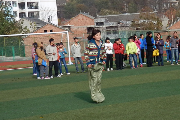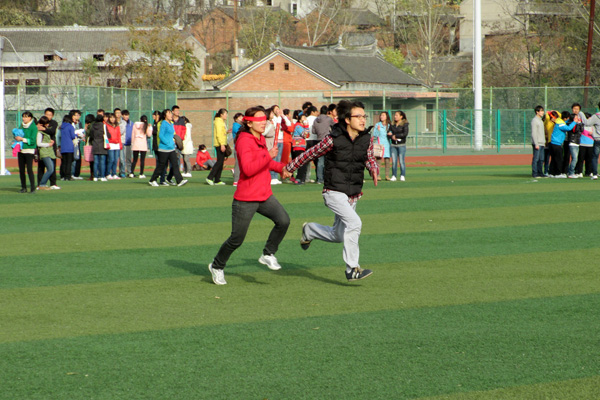 本次运动会共分为五个项目:时代列车、螃蟹运球、腿绑腿跑、袋鼠跳、导盲跑。秋风瑟瑟,运动员们的运动热情却丝毫未减,拉拉队员热烈的欢呼声,此起彼伏的呐喊声、加油声响彻在运动场的上空。经过激烈的角逐,2012级汉语言文学二班以总分第一的优秀成绩夺取了本次运动会的冠军。