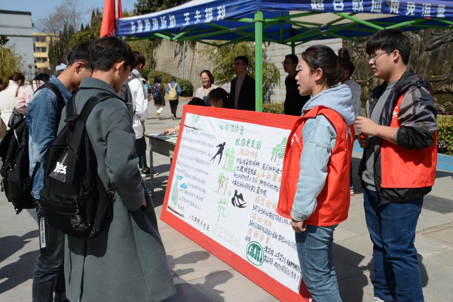 3月12日,公司在1号教学楼后开展植树节知识问答活动。参与答题即可获得特别定制的精美书签一个,根据回答问题的错对程度,获得对应的奖品;活动期间,同学与老师们踊跃参加。此次活动的目的是积极践行党中央关于“绿水青山就是金山银山”生态文明理念,积极宣传植树节相关知识,使广大师生树立牢固的环保意识。