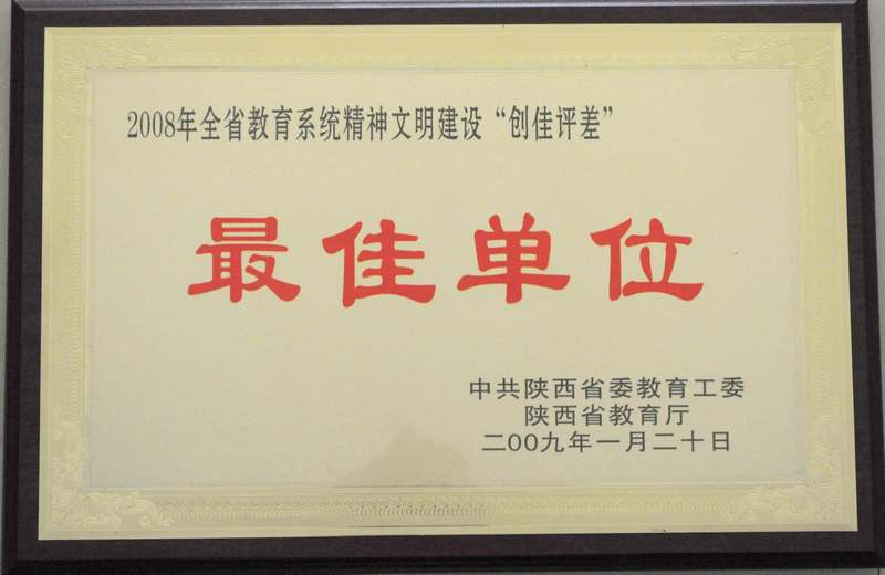 我系荣获“2008年陕西省教育系统精神文明建设‘创佳评差’”最佳单位