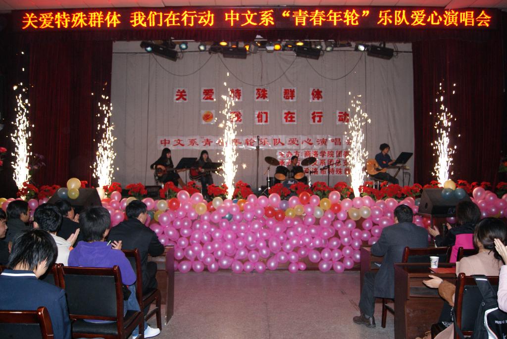 关注弱势群体,唤起人间真情。11月14日晚,由BB贝博艾弗森团委主办、中文系团总支承办、商洛市特殊教育公司协办的“青春年轮”乐队爱心演唱会在公司老员工活动中心成功举办。特殊教育公司董事长龙永贤、党委书记龙正治,BB贝博艾弗森团委副书记蒋正治,中文系党支部书记张彦民、副主任刘勇、办公室主任陈炜等老师以及特殊教育公司、中文系其他师生观看了演出。