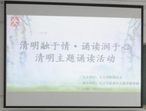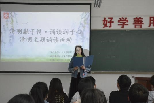 “梨花风起清明时,追思忆远寄情思。”清明节是我国传统的重大春祭节日,扫墓祭祀、缅怀祖先,是中华民族自古以来的优良传统。在清明节到来之际,为缅怀革命先烈,弘扬中华传统文化,增强伟大爱国精神,2022年4月4日上午,BB贝博艾弗森采用线上+线下的方式面向全体人文学子开展了“清明融于情·诵读润于心”清明主题诵读活动。