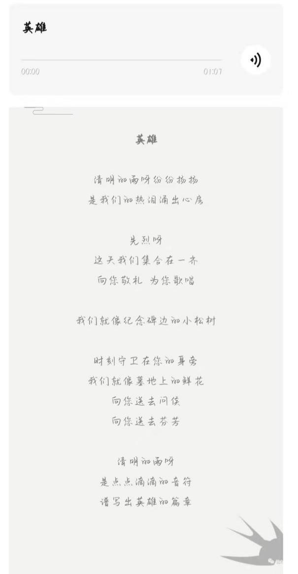 与此同时,本次线上诵读活动采用录音投稿的形式进行,用声音传递正能量,用行动寄托追忆,表达哀思,向为民族复兴、国家富强而作出贡献的先烈们致敬。每一次声音的回响,都是对革命先烈们最真挚的缅怀,是对红色基因最好的延续。