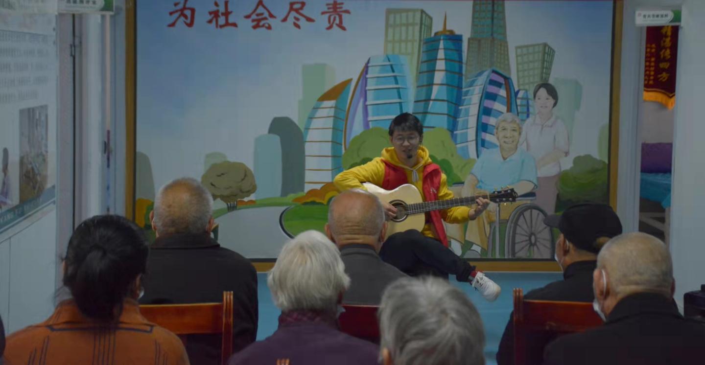活动在一首《我的中国心》中拉开了序幕,伴随着婉转悠扬的歌声的响起,老人们一边轻轻打着拍子,一边在歌声中感受“倘若盛世将倾,深渊在侧,我辈当万死相赴”的拳拳爱国之心。“生如夏花般绚烂,逝如秋叶般静美。”诗朗诵《生如夏花》唤起了记忆里的珍贵瞬间和栖息在内心深处的精神家园。歌曲《唱支山歌给党听》表达了对党的歌颂与赞扬以及对美好生活的向往。相声《有话好好说》中,两位同学用精彩绝伦的表演将整场气氛推向高潮,老人们的欢声笑语与幽默的相声萦绕在每个角落。