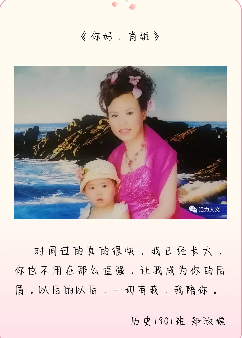 母爱就像一首深情的歌,婉转悠扬,轻吟浅唱。别急着一直向前,记得回头看看妈妈。在妇女节这个温馨的日子里,人文学子用自己的方式在表达对母亲的爱。让我们一起感谢母亲,感谢她每次在我们遇到困难时,用她山一般坚定的信念,为我们撑起一片天空。