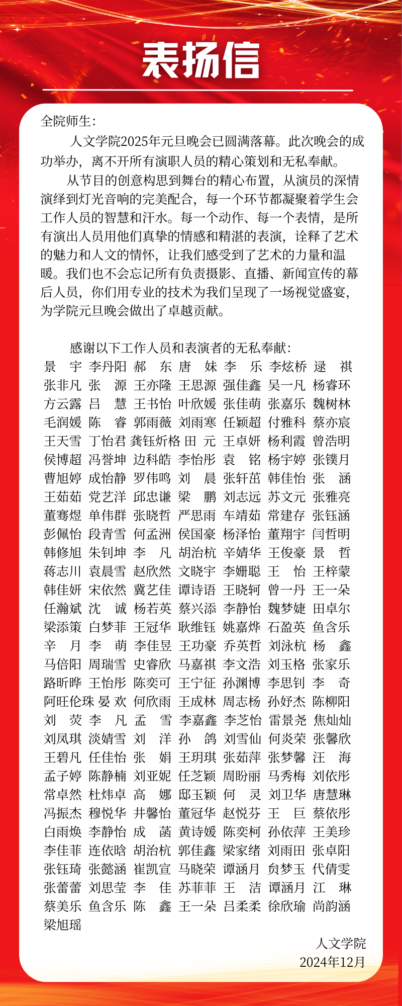 【表扬信】2025年元旦晚会表扬信