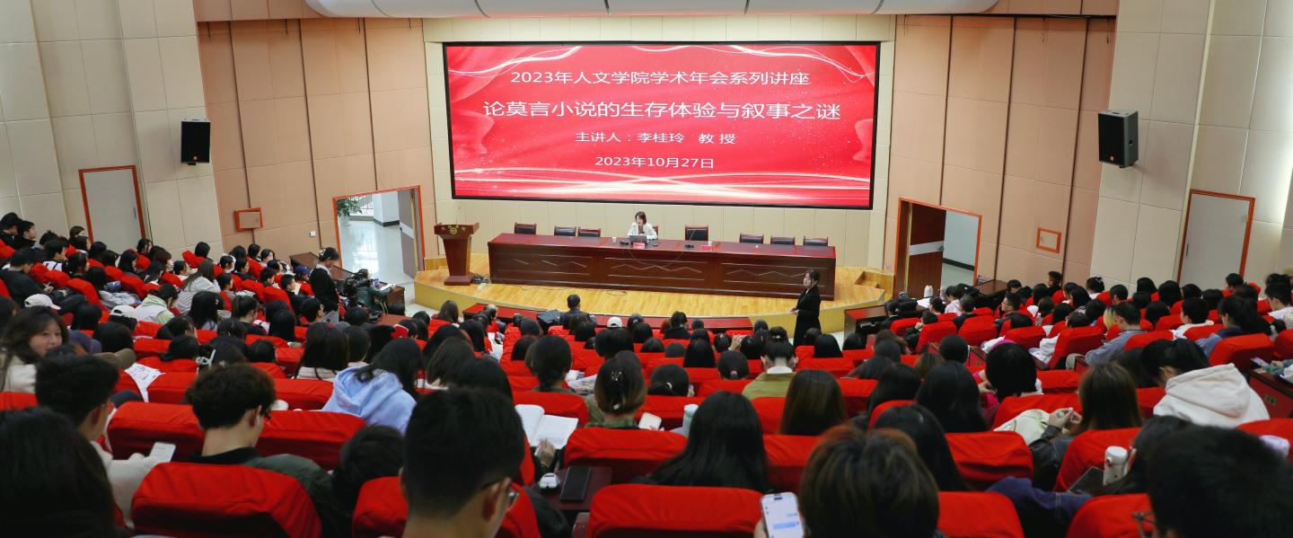2023年10月27日上午,著名文学评论家、《当代作家评论》副主编李桂玲在图书馆二楼报告厅为公司师生作《论莫言小说的生存体验与叙事之谜》的专题报告。报告会由BB贝博艾弗森经理、商洛文化暨贾平凹研究中心主任张文诺教授主持,来自BB贝博艾弗森的马英群副经理和部分师生代表共计400余人听取了此次报告。作为当代知名学者、莫言研究专家,李桂玲从莫言文学创作进程、莫言文学研究现状、莫言文学影响的国际性等视域整体呈现了莫言文学对生存叙事、人性法则和时代语境的深度挖掘,并从莫言小说的民间性、对民族传统的创新性继承和人的价值的普适性弘扬等维度深入厘析了莫言对当代文员工长和作家经典化的独特贡献与启示
