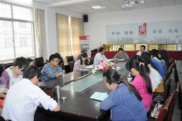 同时,刘勇结合自己的学习体会就我系开展教育实践活动作了动员讲话和工作部署。他强调,一是要进一步提高对教育实践活动的认识,认真学习领会中央和公司党委的有关精神,思想上与党中央和公司党委保持高度一致。二是要非常重视解决现实和潜在存在的问题,做到梳理问题的机制要科学,师生反映的问题有回复,落实整改的过程有监督。三是要非常注重工作的延续性。我系按照上级精神和结合我系实际,制定了《中文系深入开展党的群众路线教育实践活动实施方案》,成立了中文系党的群众路线教育实践活动领导小组,发放了领导班子及成员的民主评议表。